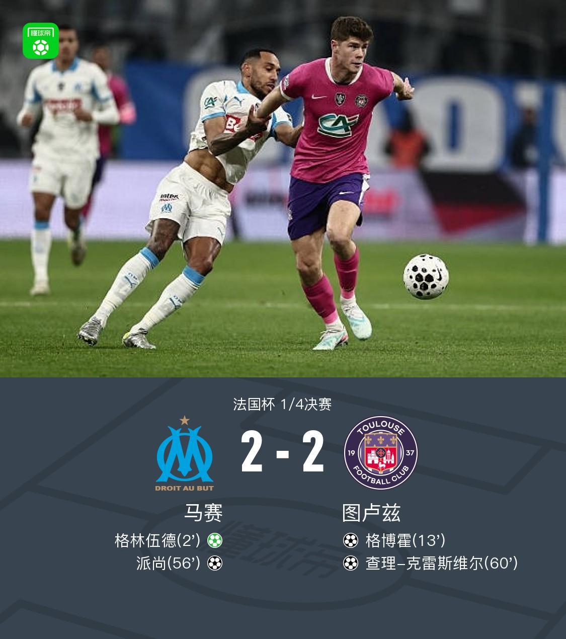 bob半岛体育平台-90分钟战报:马赛2-2图卢兹双方进入点球大战,格林伍德点射