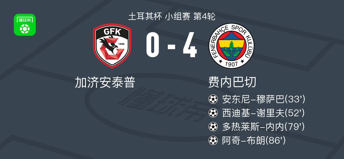 bob半岛体育官网-费内巴切4-0大胜加济安泰普,阿奇-布朗1传1射,多热莱斯-内内建功