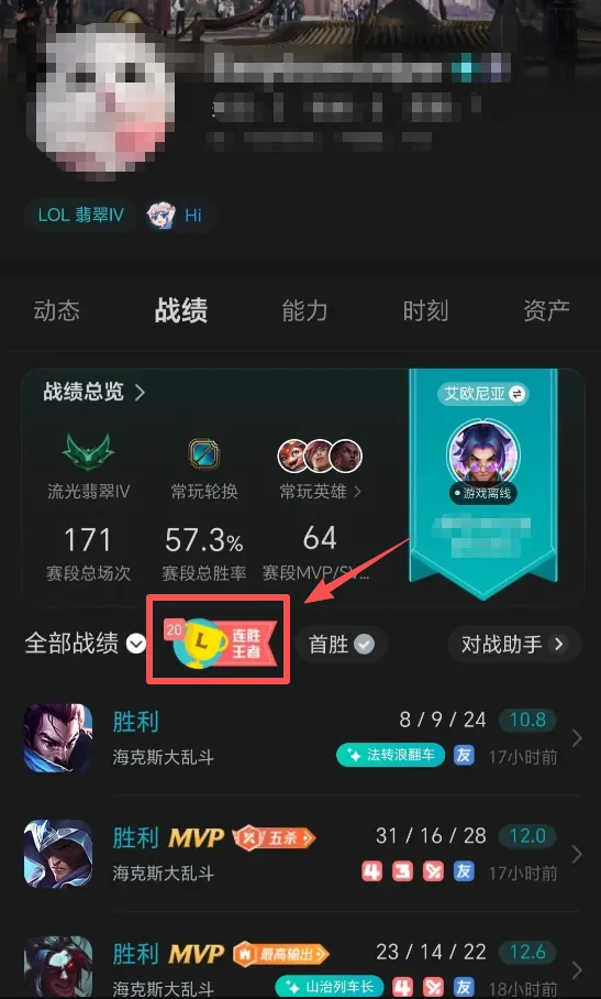 1. 本次活动需要大家晒出能证明你“连胜”的战绩列表截图: 如掌盟或游戏客户端战绩页截图(需清晰展示连续的胜利场次),如下图: